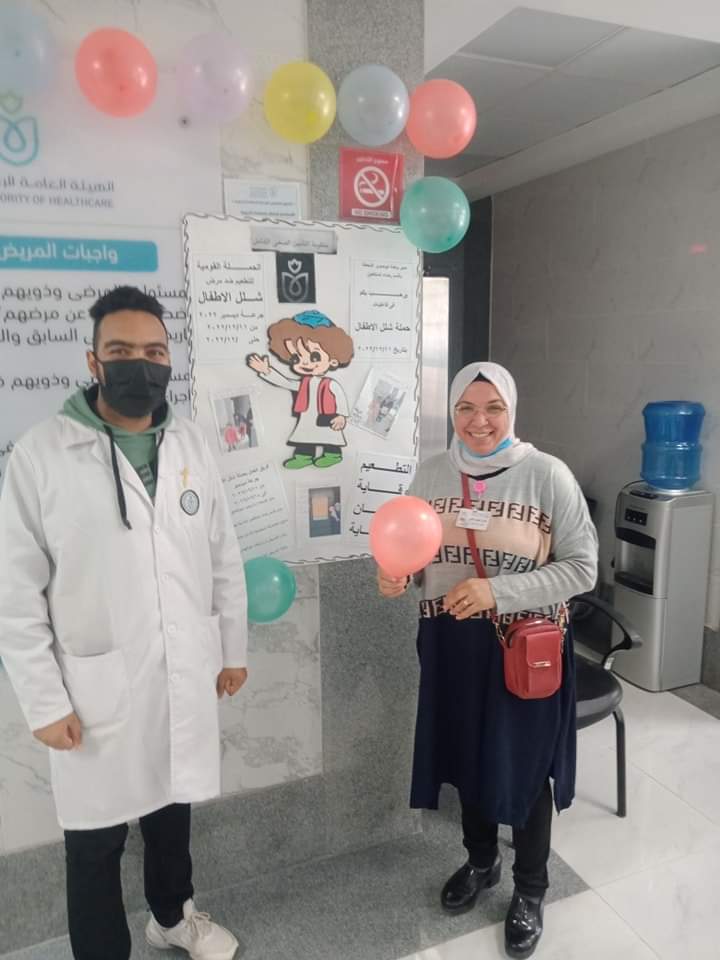 وأعلن قسم رضاء المنتفعين بالوحدة بقيادة الدكتور مينا جورج، وأمل أحمد مسئول المشاركة المجتمعية دعوة الاطفال لحضور احتفالية الوحدة وتتضمن توزيع هدايا وألعاب للأطفال المتقدمين للتطعيم، حيث قامت الوحدة بالاستعداد لاستقبال الأطفال بوضع البالونات واللافتات الترحيبية، بالإضافة إلى وضع ملصقات إرشادية حول أهمية التطعيم.
