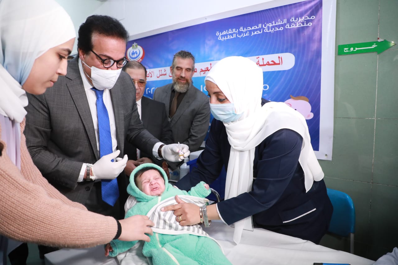أطلق الدكتور خالد عبدالغفار، وزير الصحة والسكان، الحملة القومية المجانية للتطعيم ضد مرض شلل الأطفال، اليوم الأحد، من مركز طب أسرة الحي السادس بمنطقة مدينة نصر.