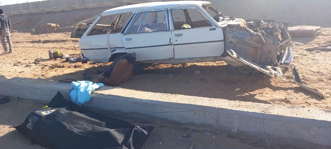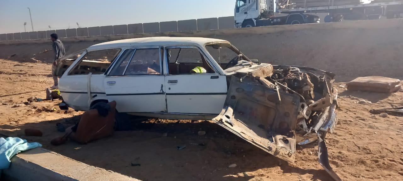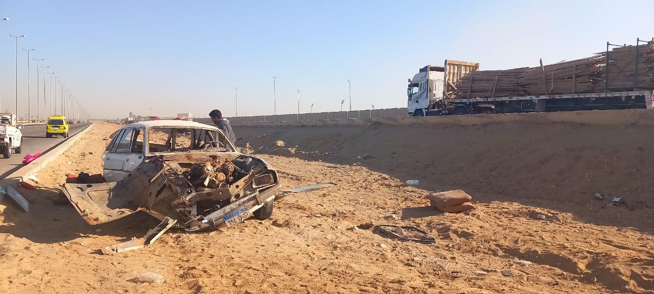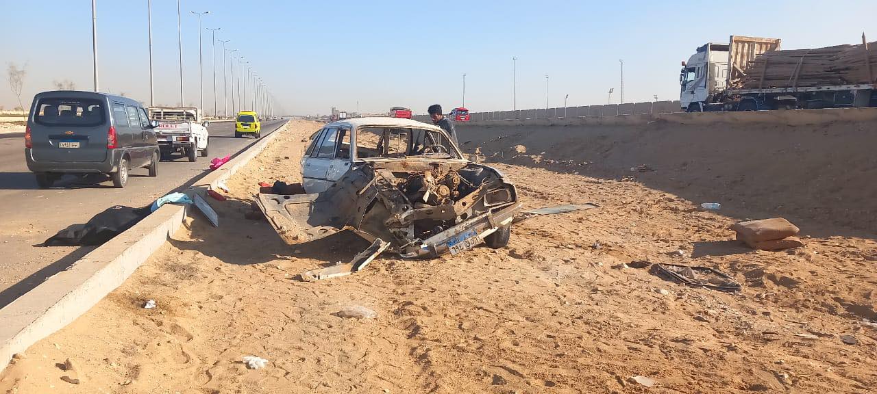 مصرع شخص وإصابة 5 آخرين في انقلاب سيارة بالطريق الأوسطي (صور)