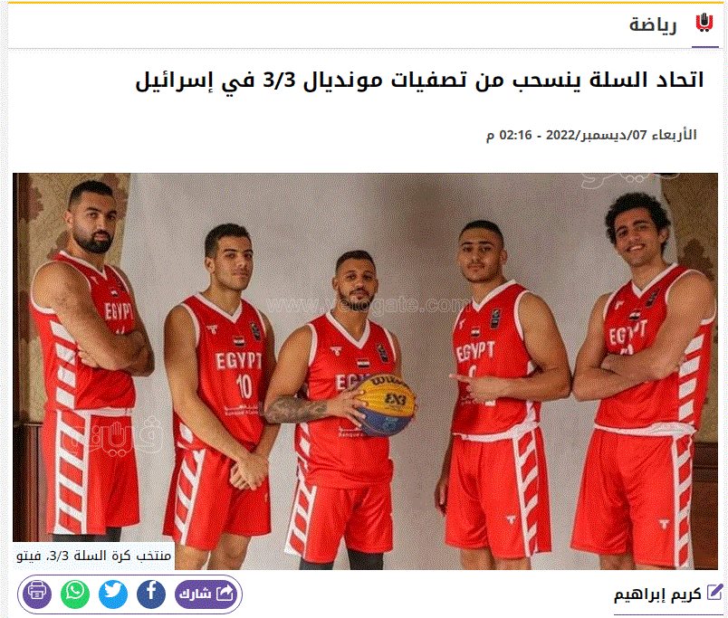 وكانت “فيتو”، قد نشرت يوم الأربعاء الماضي موضوعا يحمل عنوان “اتحاد السلة ينسحب من تصفيات مونديال 3/3 في إسرائيل”.