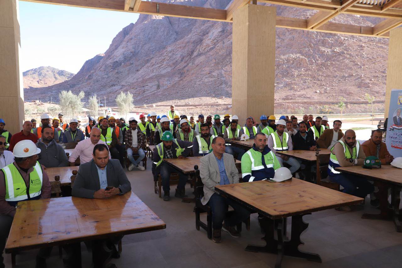 وأجرى وزير القوى العاملة حسن شحاتة،يرافقه اللواء خالد متولي،نيابة عن اللواء خالد فودة محافظ جنوب سيناء، وأشرف علم الدين مدير مديرية القوى العاملة بمحافظة جنوب سيناء، ورئيس مدينة سانت كاترين اللواء طلعت عناني، اليوم جولة تفقدية بمدينة سانت كاترين، لمتابعة مراحل التنفيذ بمشروع التجلى الأعظم الجارى تنفيذه بالمدينة طبقا لتوجيهات الرئيس عبد الفتاح السيسي، بتحويل سانت كاترين إلى قلعة للسياحة الدينية والبيئية،مع الحفاظ على الطابع الخاص بمحمية سانت كاترين،وتفقد الوزير المشروع والتقى العاملين للاطمئنان على أحوالهم وتحفيزهم للعمل بإتقان على أكمل وجه..