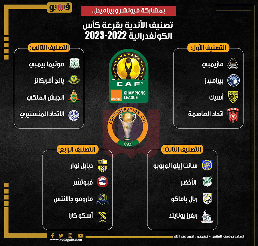 بمشاركة فيوتشر وبيراميدز.. تصنيف الأندية بقرعة كأس الكونفدرالية 2022-2023 الإثنين 12/ديسمبر/2022 - 01:15 م 12/12/2022 1:15:26 PM تصنيف الأندية بقرعة كأس الكونفدرالية،فيتو يوسف الفقي شارك طباعة 18 حجم الخط شارك طباعة