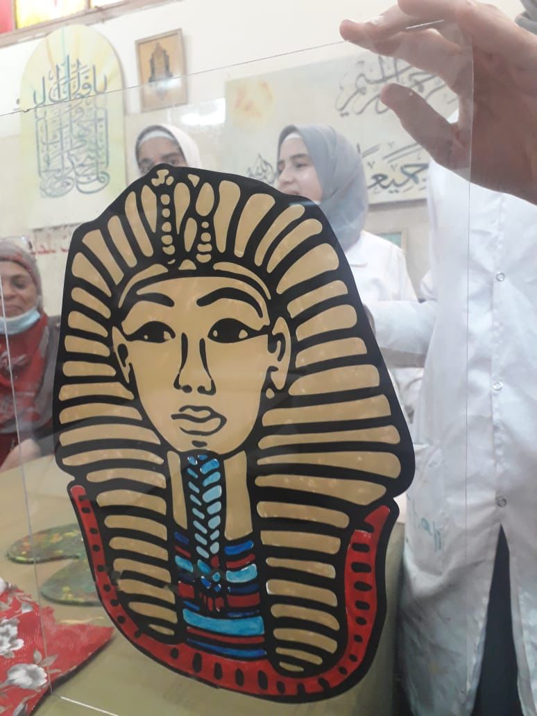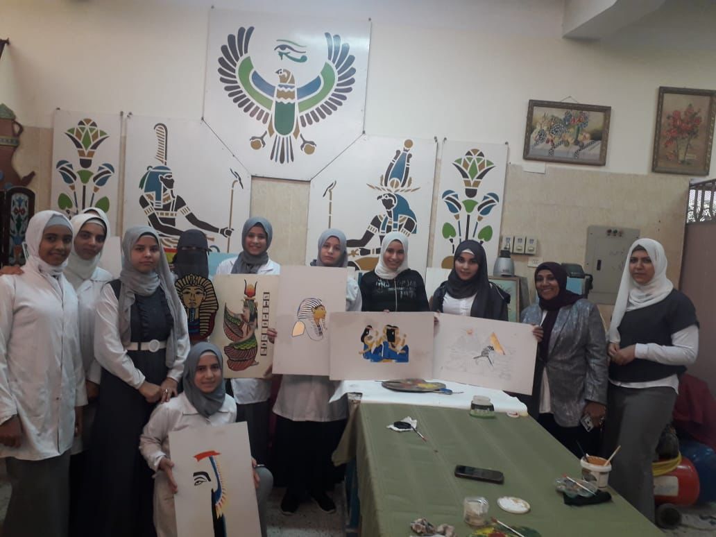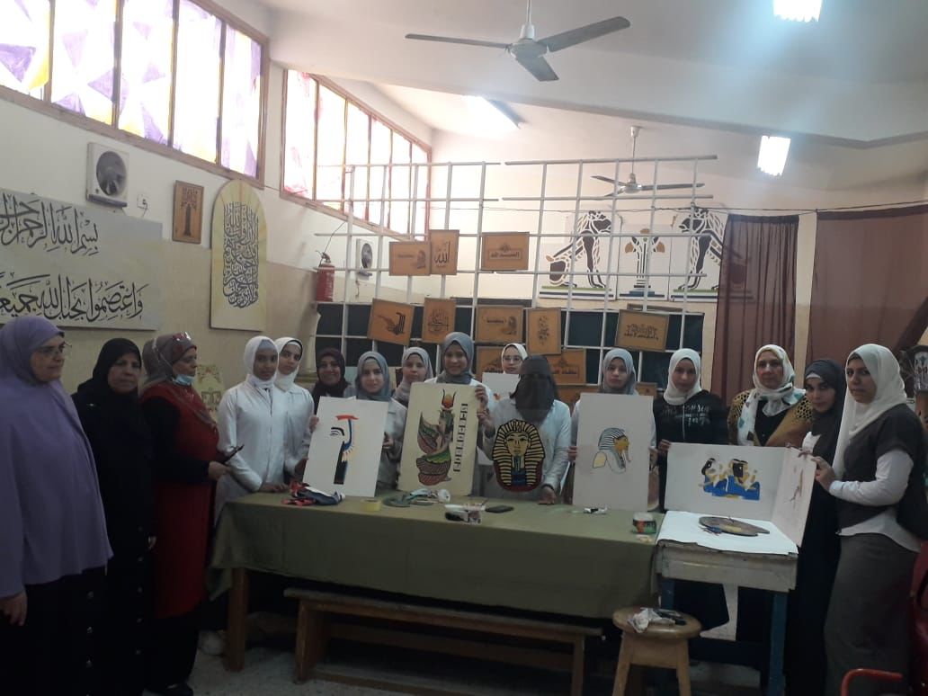 كما نظمت ادارة الوعى الاثري ورش فنية للطالبات بقسم الزخرفة، وتم تدريب الطالبات علي الرسومات والكتابة الفرعونية لمعرفة معلمات قسم الزخرفة بالمدرسة.