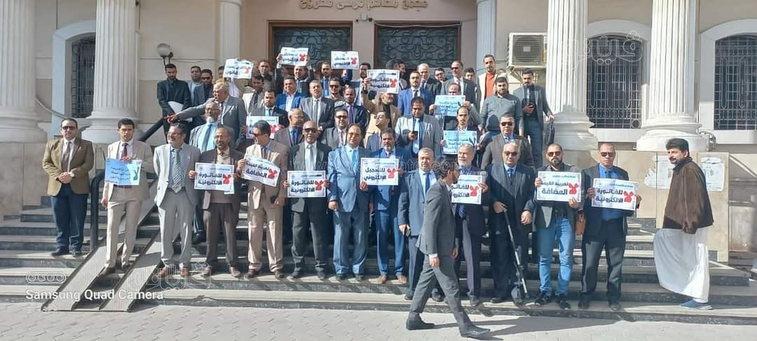 وقفة صامتة لمحامي مطروح أمام المحكمة رفضا للفاتورة الإلكترونية (صور)