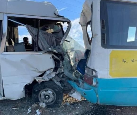 إصابة 45 شخصا في تصادم 3 حافلات بالأردن (صور)