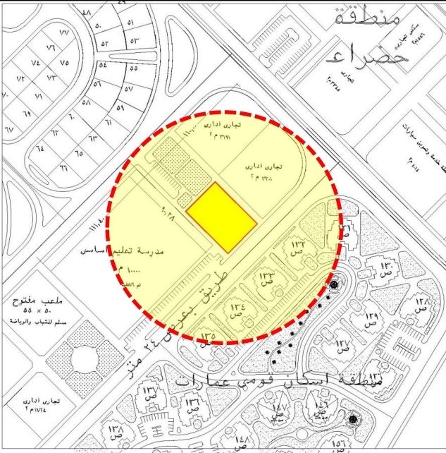 وتم طرح قطعة أرض بمركز خدمات المجاورة السادسة منطقة٨٤٠ فدانًا بمساحة ١٧٥٠ مترًا مربعًا بنشاط حضانة وسعر الارض مقابل الانتفاع السنوي للأرض ٣٠٦٦٢٠ جنيهًا سنويًّا.
