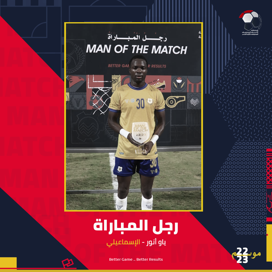 ياو أنور أفضل لاعب في مباراة الإسماعيلي وفيوتشر