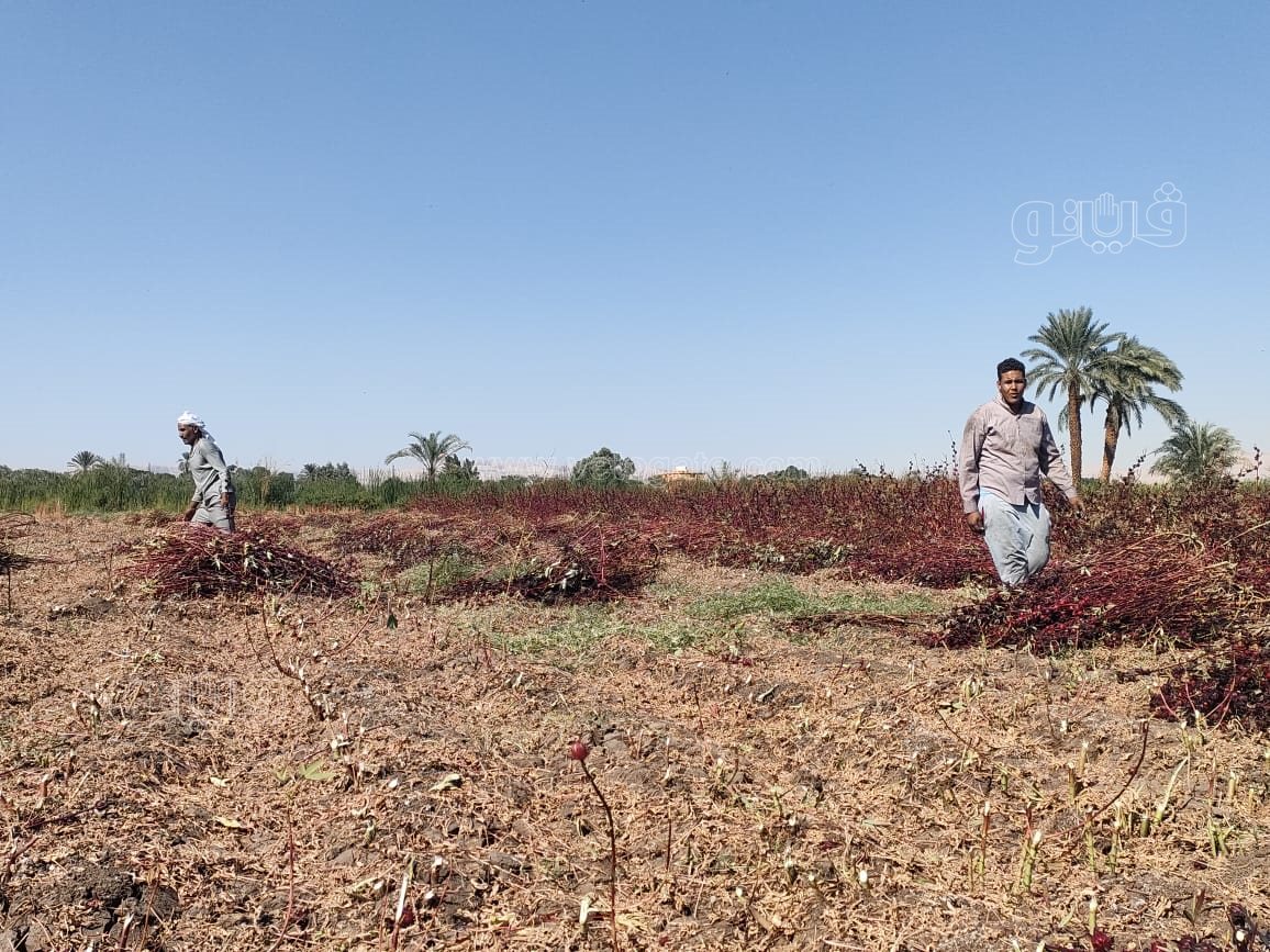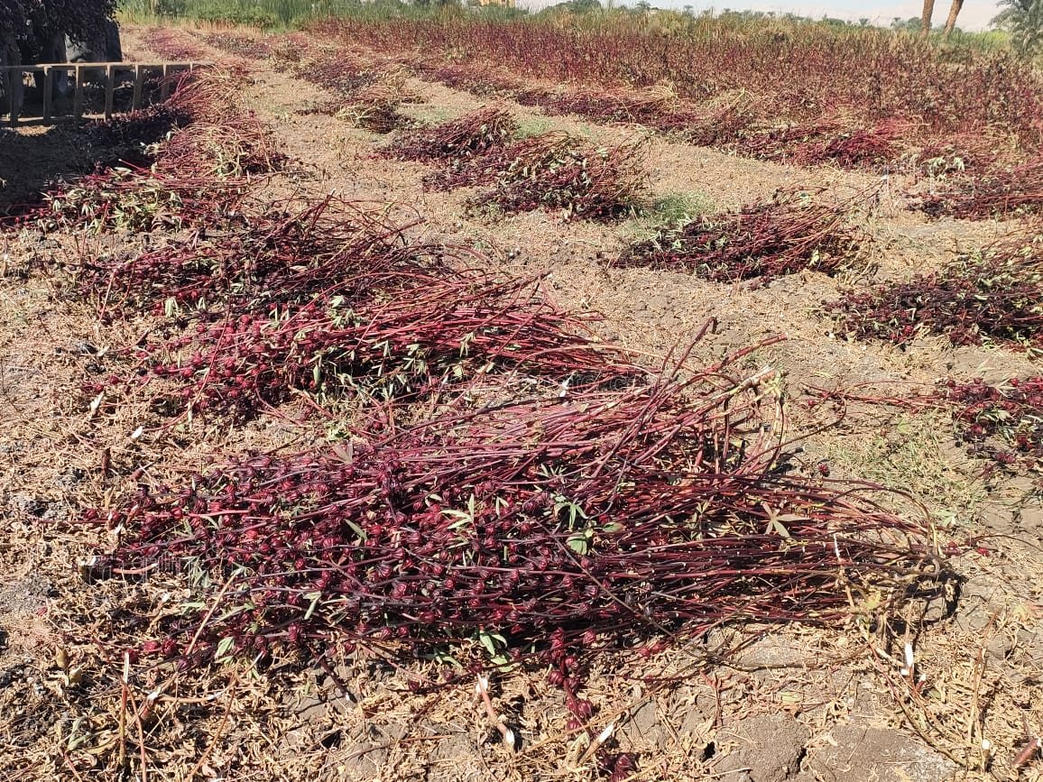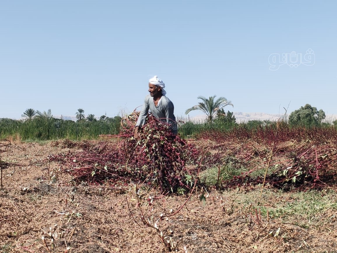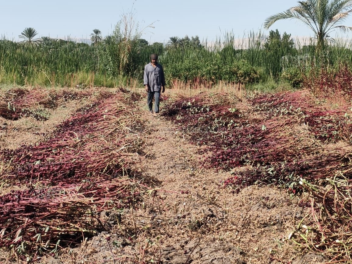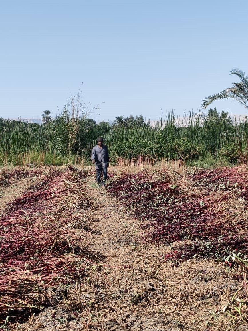 بدء موسم حصاد الكركديه في حقول الضبعية بالأقصر (صور)