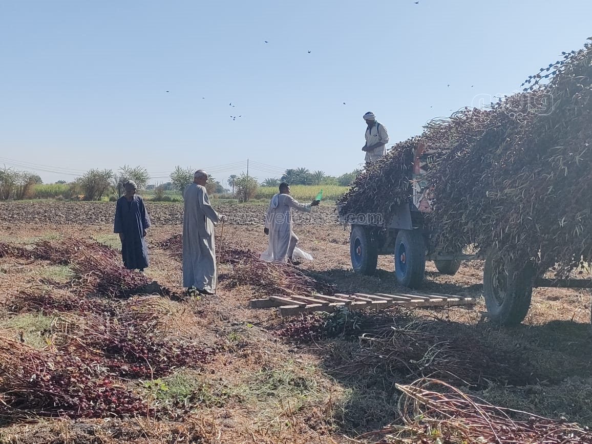 وتابع: المحصول في الغيطان بهذا اللون الأحمر يمثل فرحة كبيرة، وهنا يتجمع الأهالي فرحًا من كبار وصغار، خاصة يوم الحصاد إلى جانب أعمال التنشيف التي تتم أمام أبواب بيوت القرية".