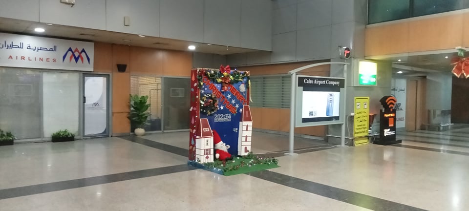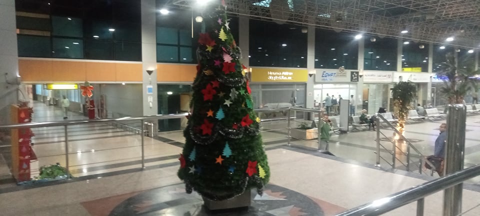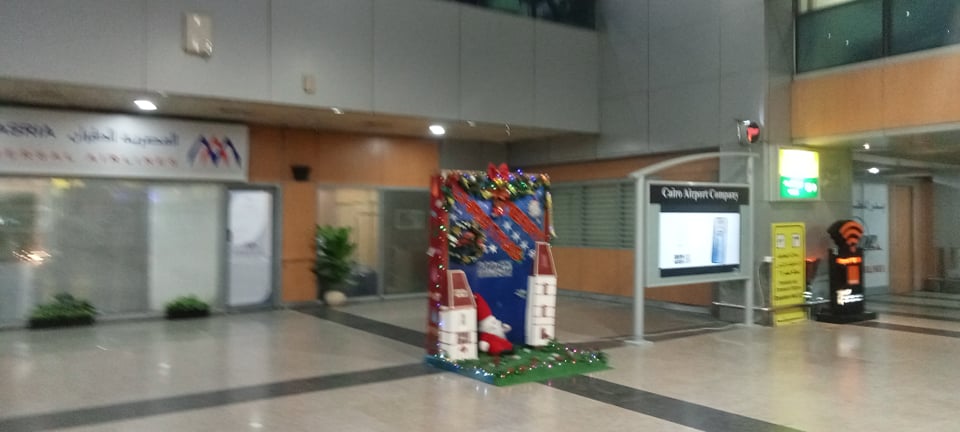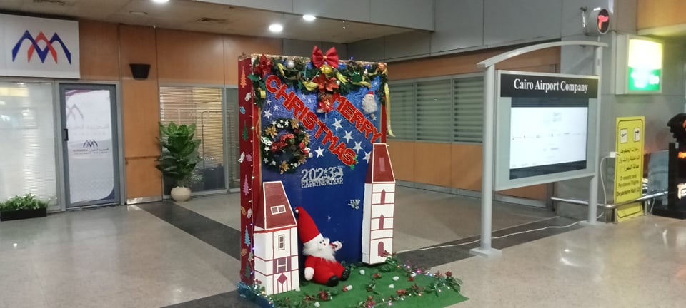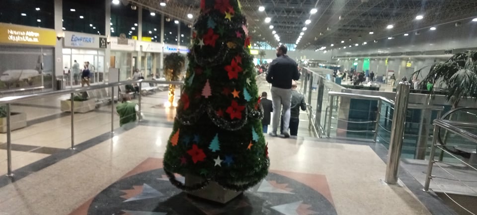 مطار القاهرة يستعد للاحتفال بأعياد الميلاد بأشجار الكريسماس وبابا نويل