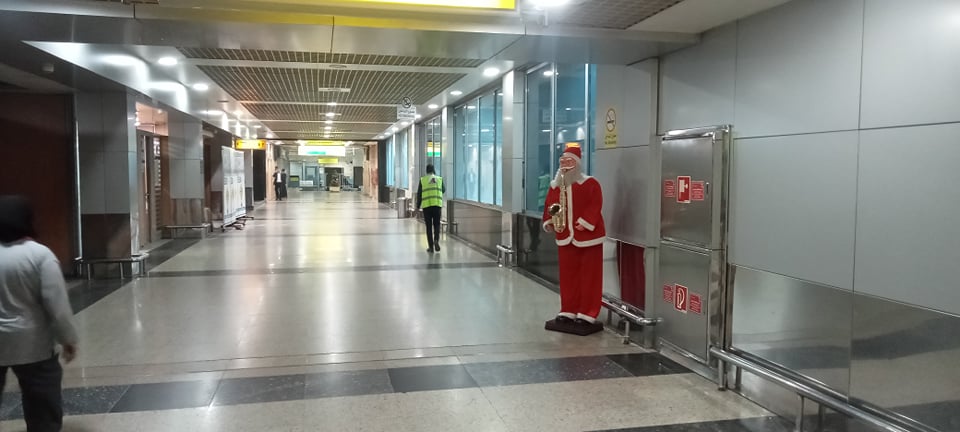 ويحرص المسافرون علي التقاط الصور التذكارية مع مجسمات بابا نويل واشجار الميلاد احتفالا باقتراب اعياد رأس السنة المالية.
