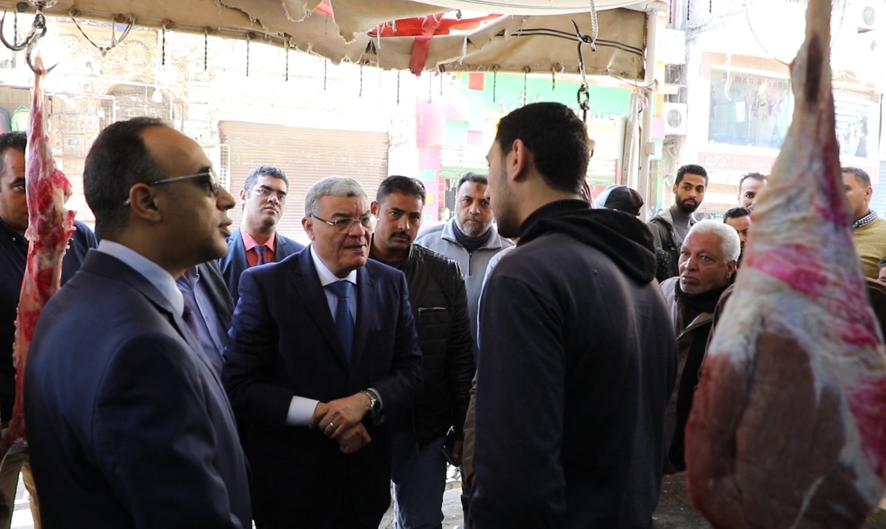 رافق المحافظ، الدكتور محمود يوسف وكيل وزارة التموين، الدكتور محمد حلمي رئيس المدينة، الدكتور محمد نادي وكيل وزارة الصحة، ومباحث التموين، الدكتور محمد عثمان مدير مديرية الطب البيطري.