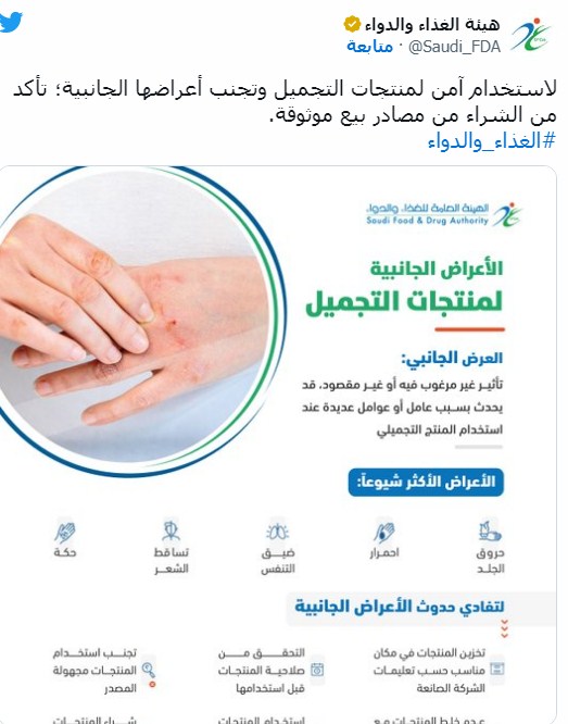 تحذير من هيئة الغذاء والدواء السعودية بشأن منتجات التجميل