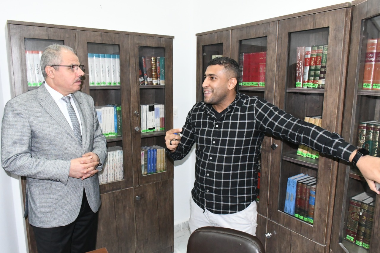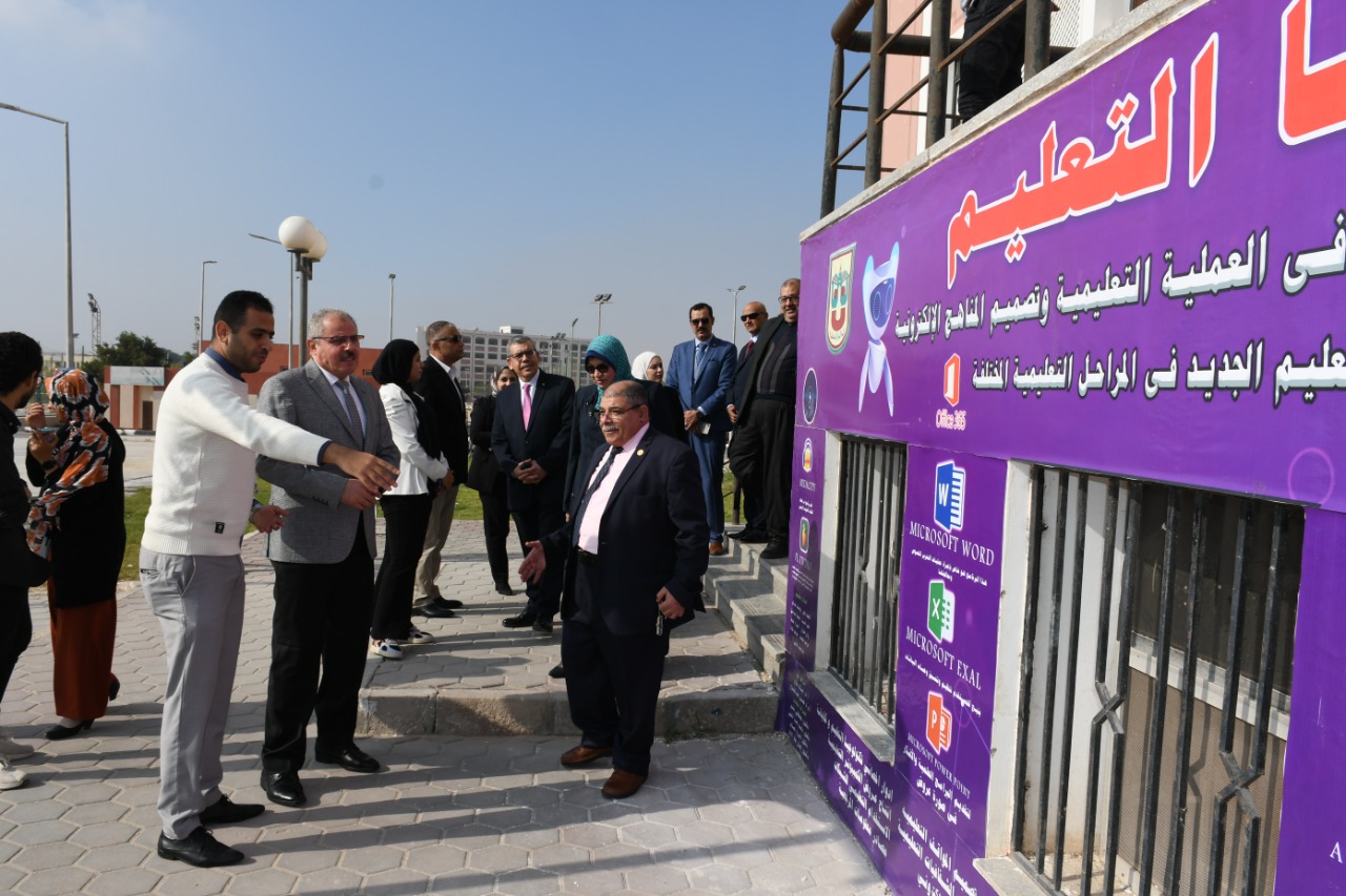بدأت الزيارة بتفقد المكتبة الرقمية، حيث أشاد الدكتور ناصر مندور بأن يكون هذا التطوير ضمن مشروع تخرج طلاب الفرقة الرابعة شعبة تكنولوجيا التعليم، مؤكدًا أن مساهمة الطلاب فى تطوير كليتهم أصبح من أهم الغايات التى تسعى الجامعة إلى دعمها.