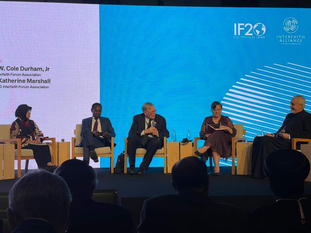 جاء ذلك خلال كلمتها في فعاليات منتدى "الأديان لمجموعة العشرين" تحت عنوان "إشراك مجتمعات الأديان في صياغة أجندة قمة العشرين وما وراء ذلك"، بتنظيم مشترك بين جمعية منتدى القيم الدينية لمجموعة العشرين وتحالف الأديان لأمن المجتمعات.