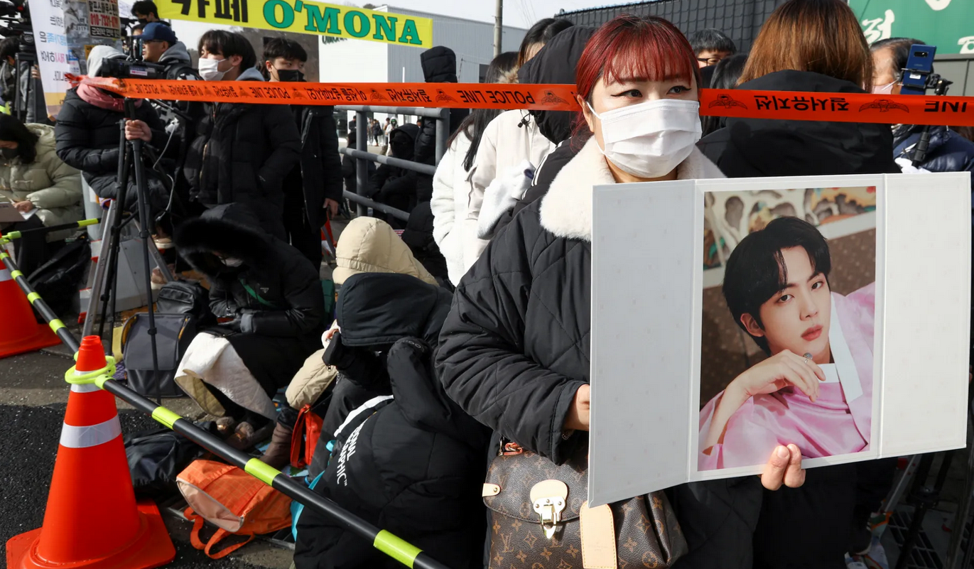 انضم إلى جيش كوريا الجنوبية مجند جديد، وهو جين أكبر الأعضاء سنًّا بفرقة البوب الكوري الشهيرة بي.تي.إس، ليبدأ 18 شهرًا من الخدمة العسكرية الإلزامية وهو حليق الرأس تماما.