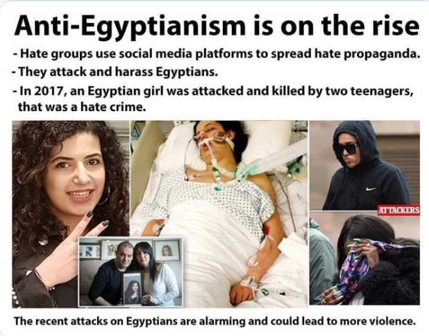 كما ذكر متابع قصة طالبة مصرية توفيت بسبب العنصرية الغربية وقال:"مريم طالبة مصرية ماتت بسبب عنصرية الأفروسنترك البريطانيين.. زيهم زي كيفن هارت بس هو بيستغفلنا".
