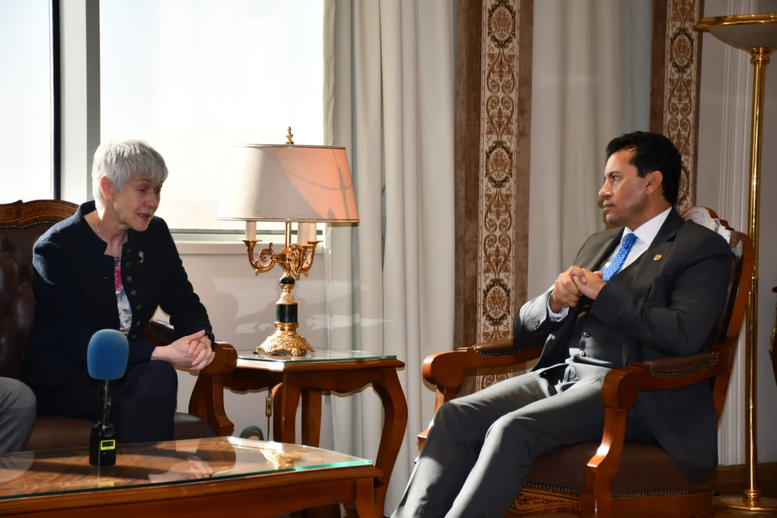 استقبل الدكتور أشرف صبحي وزير الشباب والرياضة، زينة ولدريدج رئيس الاتحاد الدولي للاسكواش، بمقر الوزارة بالعاصمة الادارية الجديدة، لبحث سبل التعاون مع الاتحاد الدولي للاسكواش.