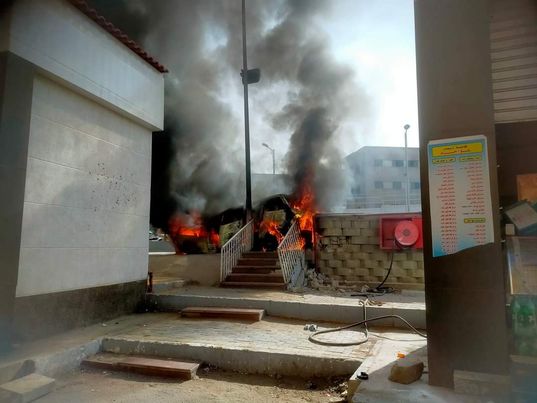 وبالفحص تبين تفحم سيارتين بالكامل وجار تفريغ كاميرات المراقبة وسؤال شهود العيان للوقوف على ملابسات الواقعة.