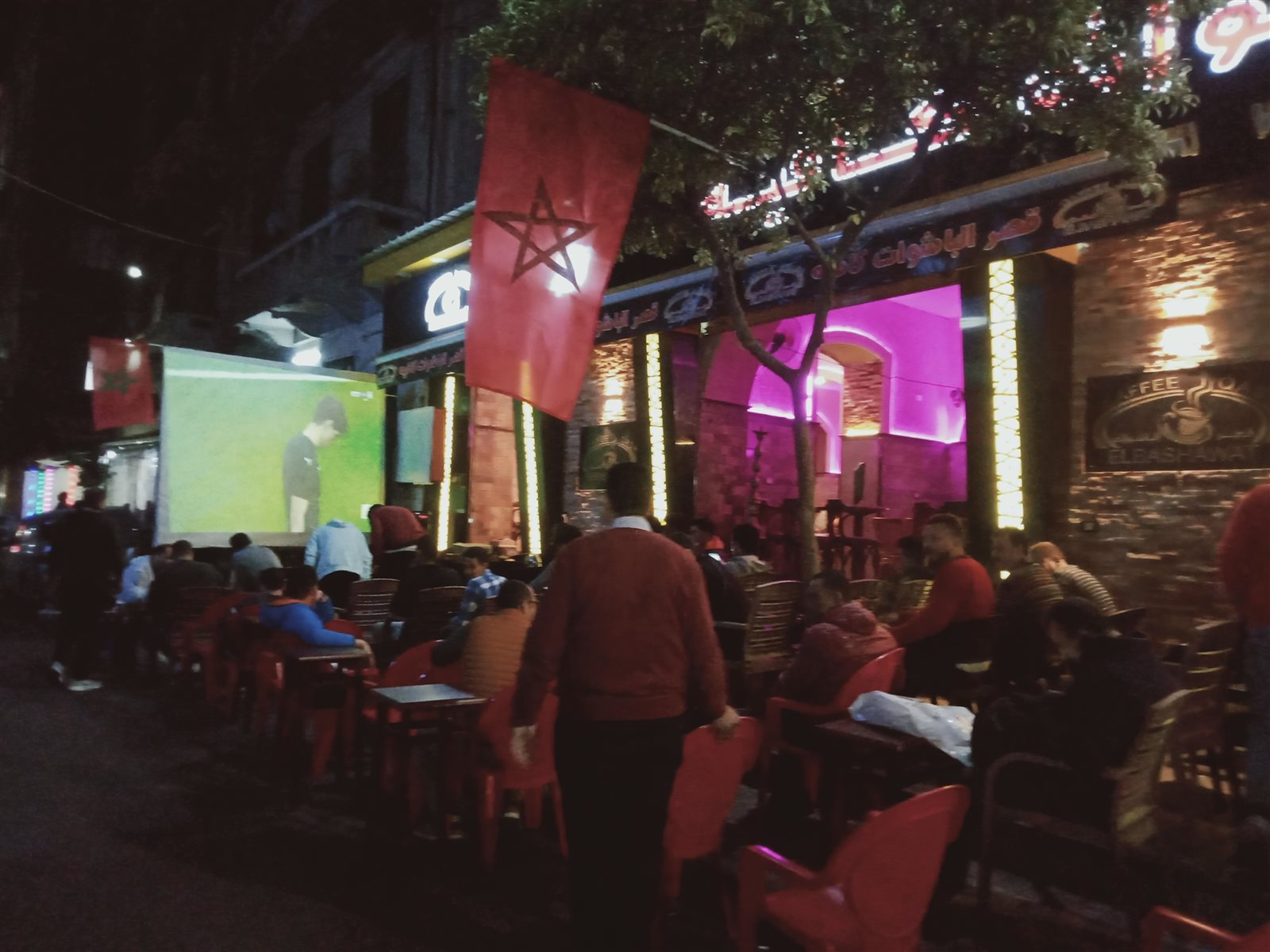 وكان أصحاب المقاهى استعدوا للمباراة بافتراش المقاعد المخصصة للأسر والشباب بمختلف الأعمار ووضع اعلام دولة المغرب ووضع الشاشات الكبرى لمشاهدة المباراة المرتقبة بكأس العالم عقب عبور نسور الأطلس بالفوز على منتخب البرتغال واسبانيا.