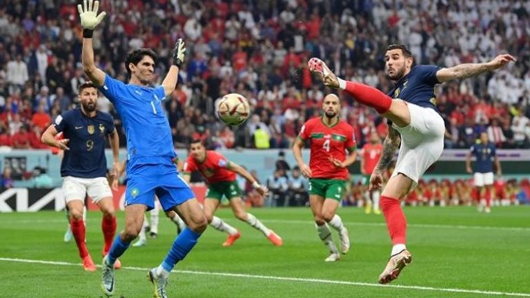 سجل هدفي فرنسا في شباك المغرب، ثيو هيرنانديز في الدقيقة 5، كولو مواني في الدقيقة 79.