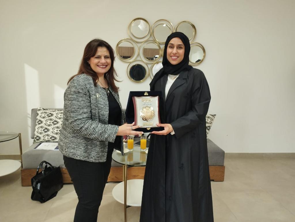 وفي ختام اللقاء أهدت السفيرة سها جندي، درع وزارة الهجرة، إلى حصة بنت عيسى بوحميد، وزيرة تنمية المجتمع بدولة الإمارات، تقديرا لجهودها.