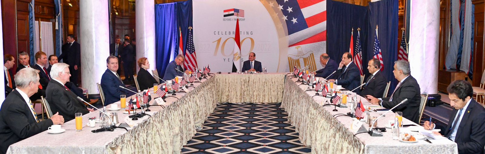 وصرح المتحدث الرسمي باسم رئاسة الجمهورية بأن الرئيس أكد خلال اللقاء على استراتيجية العلاقات الممتدة منذ عقود بين مصر والولايات المتحدة، وحرص مصر على تعزيز تلك العلاقات بكل جوانبها، وذلك في إطار من الاحترام المتبادل والمصلحة المشتركة، لاسيما في ظل الواقع الإقليمي المضطرب في المنطقة وما يفرزه من تحديات متصاعدة، وعلى رأسها عدم الاستقرار وخطر الإرهاب الآخذ في التنامي والذي طالت تداعياته العديد من الدول، فضلًا عن التداعيات السلبية على الاقتصاد وأمن الطاقة والغذاء التي سببتها العديد من الأزمات العالمية المتلاحقة وعلى رأسها جائحة كورونا والأزمة الروسية الأوكرانية، وهو ما يستدعي التكاتف لمواجهة تلك التداعيات.