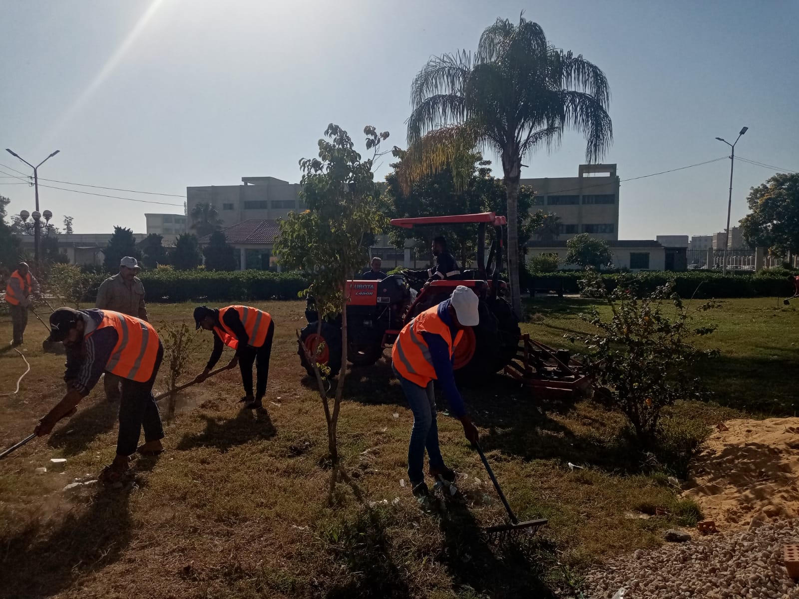 جهاز التطوير والتجميل يواصل أعماله في رفع كفاءة المسطحات الخضراء بمدينة الإسماعيلية