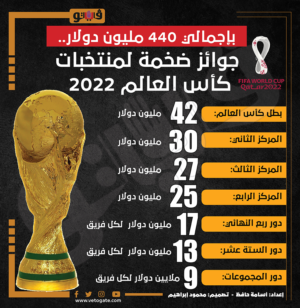 بإجمالي 440 مليون دولار.. جوائز ضخمة لمنتخبات كأس العالم 2022 (إنفوجراف)