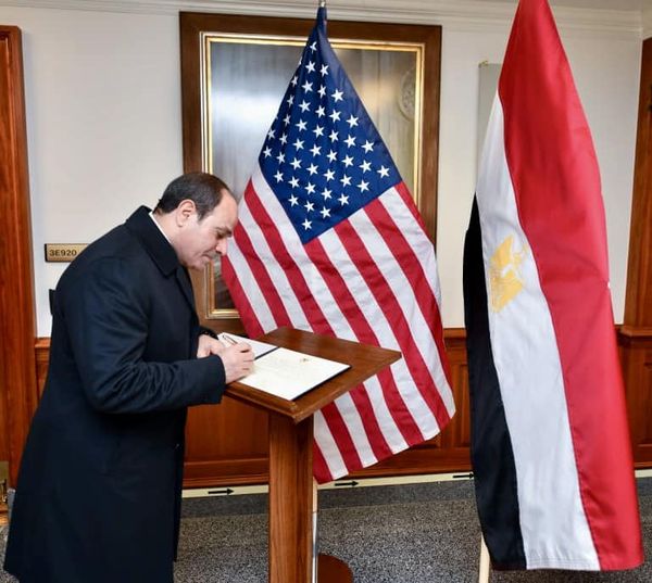 ماذا كتب الرئيس السيسي في دفتر الشرف الخاص بوزارة الدفاع الأمريكية