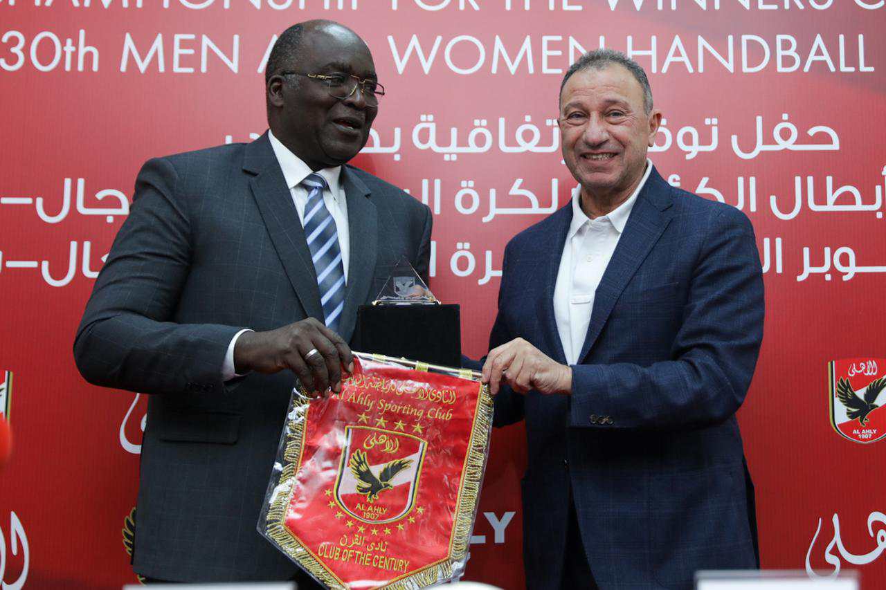 وأقام النادي الأهلي ظهر اليوم حفلًا لتوقيع عقود استضافة بطولتي إفريقيا للأندية أبطال الكؤوس لكرة اليد رقم ٣٩ «رجال وسيدات» وبطولة كأس السوبر الإفريقي لكرة اليد رقم ٣٠ «رجال وسيدات» خلال شهر مايو المقبل.