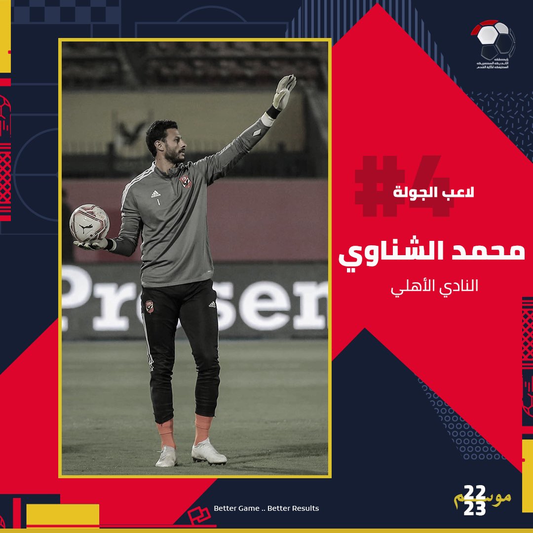 وكتبت صفحة الرابطة عبر موقع التواصل الاجتماعي تويتر:" حامي عرين النادي الأهلي، محمد الشناوي هو لاعب الجولة الرابعة بعد تألقه اللافت خلال مواجهة الأهلي والاتحاد".