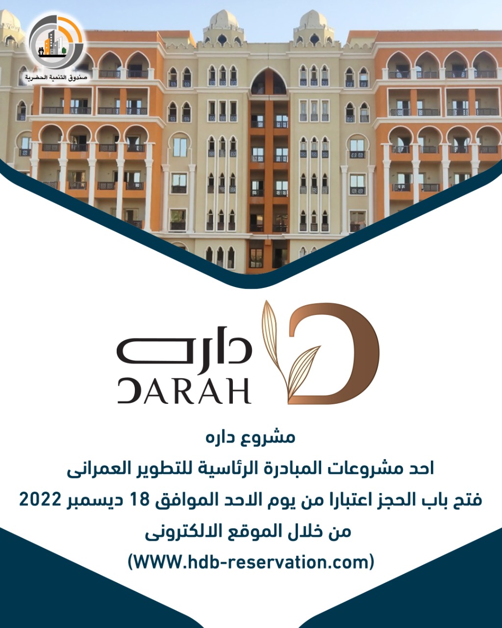 صندوق التنمية الحضرية يعلن بدء الحجز بمشروع داره الأحد