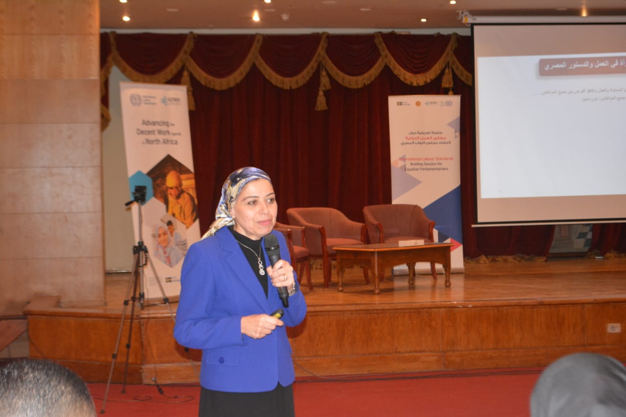 وإستهدفت الجلسة تعريف أعضاء مجلس النواب المصري بالمعايير الدولية واتفاقيات منظمة العمل الدولية الخاصة بالمساواة بين الجنسين وحقوق الأشخاص ذوى الاعاقة وانعكاساتها فى التشريعات الوطنية..