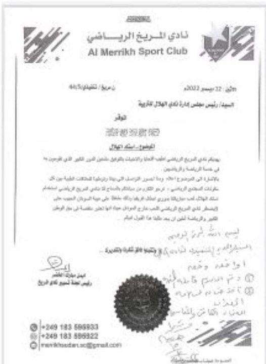 ووافقت إدارة الهلال على استقبال مباريات المريخ والتي تبدأ في العاشر من فبراير 2023، ويقع نادي المريخ في مجموعة ضمت نادي الزمالك المصري، شباب بلوزداد الجزائري، الترجي التونسي.
