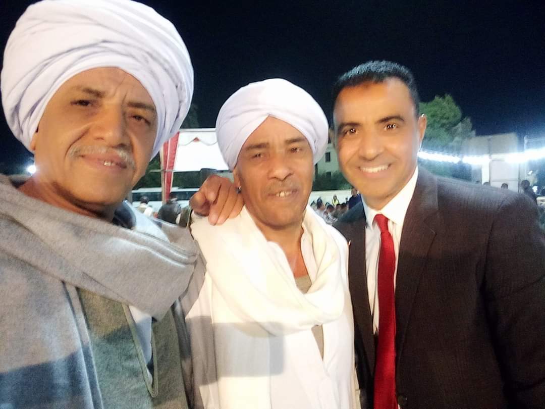 الفنان أحمد الشافعي يلتقط الصور التذكارية مع المشاركين بمهرجان التحطيب في الأقصر (صور)