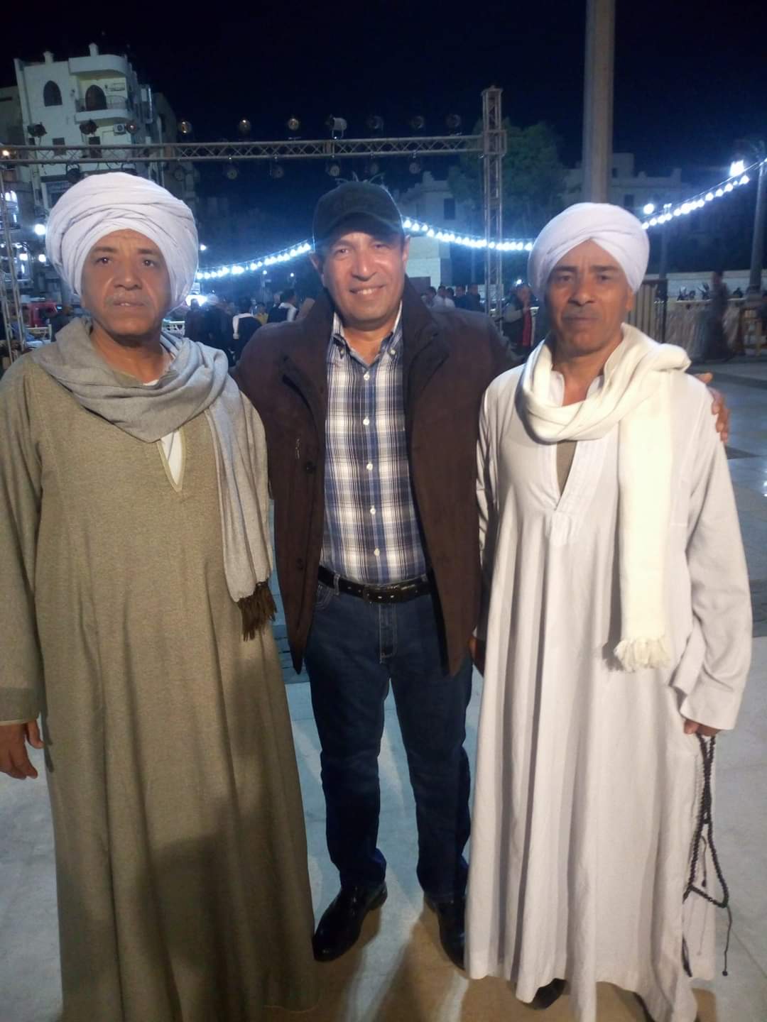 التقط العديد من المشاركين بمهرجان التحطيب الثاني عشر الصور التذكارية مع الفنان أحمد الشافعي رئيس المهرجان، وسط أجواء احتفالية بإقامة المهرجان في ساحة سيدي أبو الحجاج الأقصري.