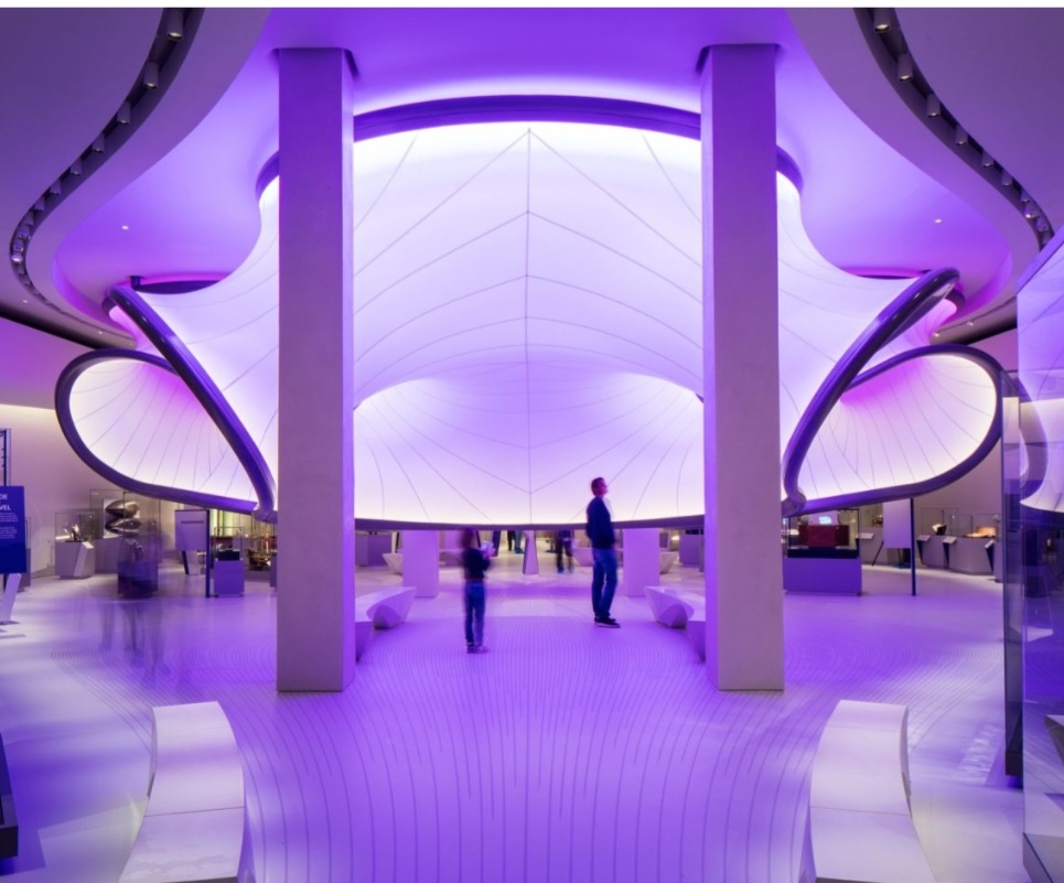 يركز موضوع المتحف البريطاني على التطورات العلمية والتكنولوجية للبشرية تصميم معرض الرياضيات من قبل زها حديد هو تمثيل فني للرياضيات نفسها - المعرض مستوحى من تدفق الهواء لطائرة متحركة لأنه يمثل نفقًا هوائيًّا محسوبًا بسبب حركة الطائرة تعود "البيئة الأخاذة" للمعرض إلى تصميم الإضاءة الاصطناعية الرائع من Arup
