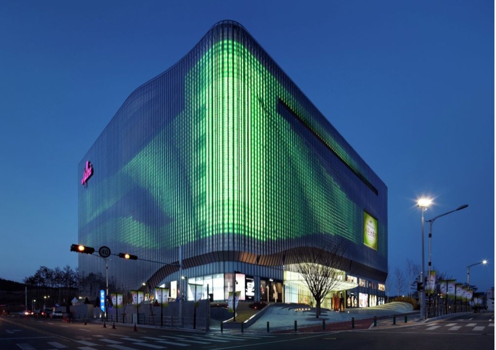 هذا المتجر في تشونان، كوريا الجنوبية الذي صممه (UNStudio) ومقره أمستردام هو أحد أعمالهم الرائعة يكمن السحر في واجهة المباني التي تتكون من طبقتين رفيعتين من الرقائق التي تخلق ما يسمى بتأثير تموج في النسيج.