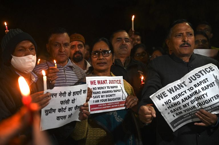 حمل العشرات من النشطاء الهنود الشموع في وقفة احتجاجية في نيودلهي، أحيوا فيها الذكرى الـ10 للشابة جيوتي سينج التي توفيت إثر تعرضها لاغتصاب جماعي وحشي في حافلة للركاب.