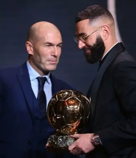 ونشر بنزيما صورة له مع زين الدين زيدان، أثناء استلام الكرة الذهبية، وكتب عليها "ليلة سعيدة".