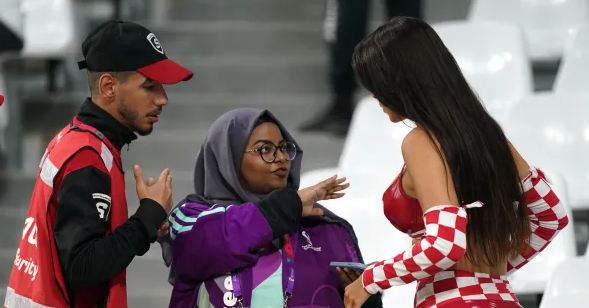 وبحسب الصحيفة البريطانية، كانت المشجعة الكرواتية تظهر بملابسها المميزة باللونين الأحمر والأبيض كما تفعل قبل كل مباراة مع منتخبها الوطني، لكن يبدو أن الأمن طلب منها سريعًا العودة إلى مقعدها.