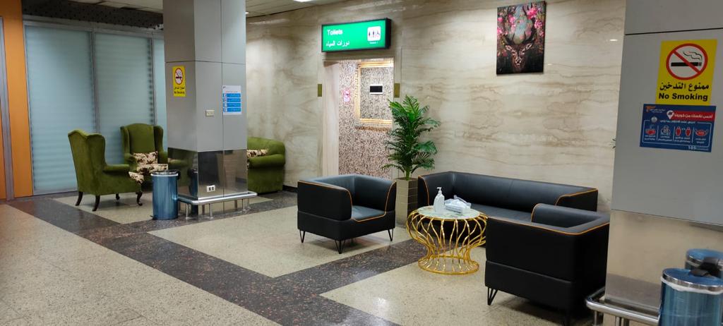 كما تم زيادة عدد مقاعد الانتظار داخل الصالات وخارجها لاستيعاب الكثافة العالية للركاب، ويتم عمل حملات مكثفة على الطرق الداخلية وساحات الانتظار الخاصة بالمبنى لإجراء أعمال النظافة اللازمة بإستخدام المكانس الألية والعمالة المدربة على المهام الصعبة فريق الـ TASK FORCE، ويتم إستخدم نفس الفريق لنزح مياه الأمطار فى حالات الطقس السيئ.. ويتم إجراء أعمال التعقيم والتطهير لجميع الكاونترات وعربات اخدم نفسك قبل بدء الرحلات وبعد الانتهاء منها، فضلًا عن توافر العدد الكافى من العربات داخل الصالات لخدمة الركاب.
