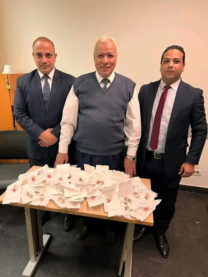 وقام أحمد أبو بكر فؤاد مدير الإدارة بالانابة، بتكليف ميلاد رسمي مدير الحركة، ومحمد فتح الله مأمور الجمرك، بتفتيش حقائب الراكب فتبين وجود ٦١ عبوة دوائية زجاجية غالية الثمن داخل حقائب الراكب.