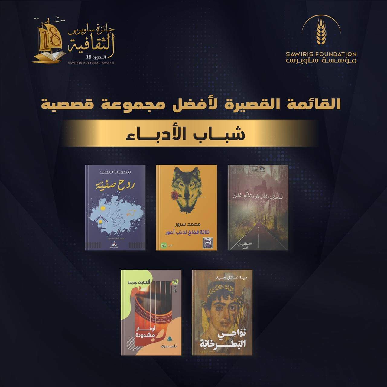 أعلنت مؤسسة ساويرس للتنمية الاجتماعية، ومجلس أمناء جائزة ساويرس الثقافية عن القوائم القصيرة لشباب الأدباء وكتاب السيناريو، عن أعمالهم التي استقرت عليها آراء أعضاء لجان تحكيم الدورة الثامنة عشرة.