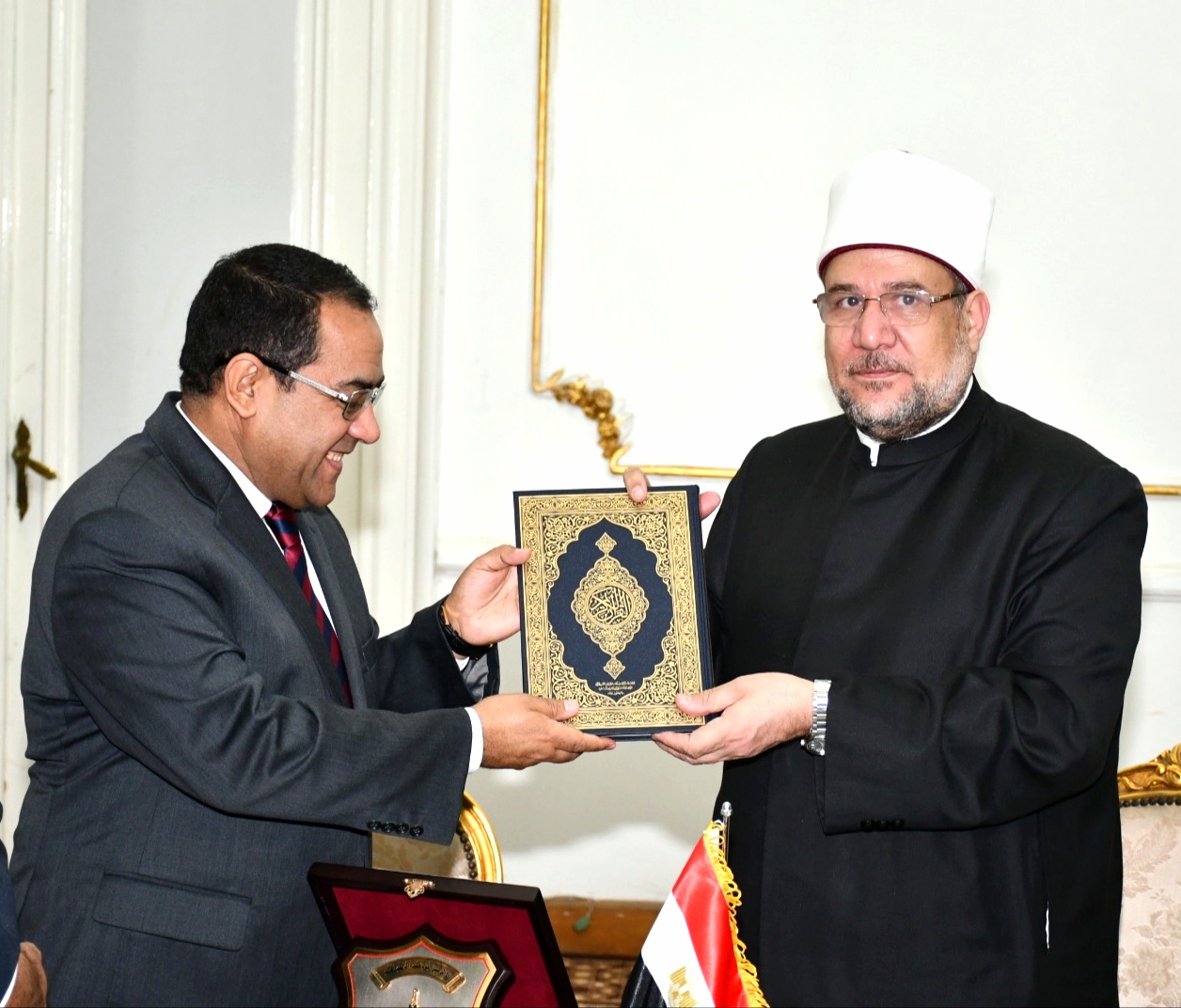 وفي ختام الاجتماع، أهدى الدكتور محمد مختار جمعة وزير الأوقاف كتاب الله (عز وجل) ودرع وزارة الأوقاف إلى الدكتور صالح الشيخ رئيس الجهاز المركزي للتنظيم والإدارة، تقديرًا للجهود الكبيرة التي بذلها الجهاز في مسابقة تعيين ألف إمام وخطيب ومدرس وألف عامل بالوزارة.