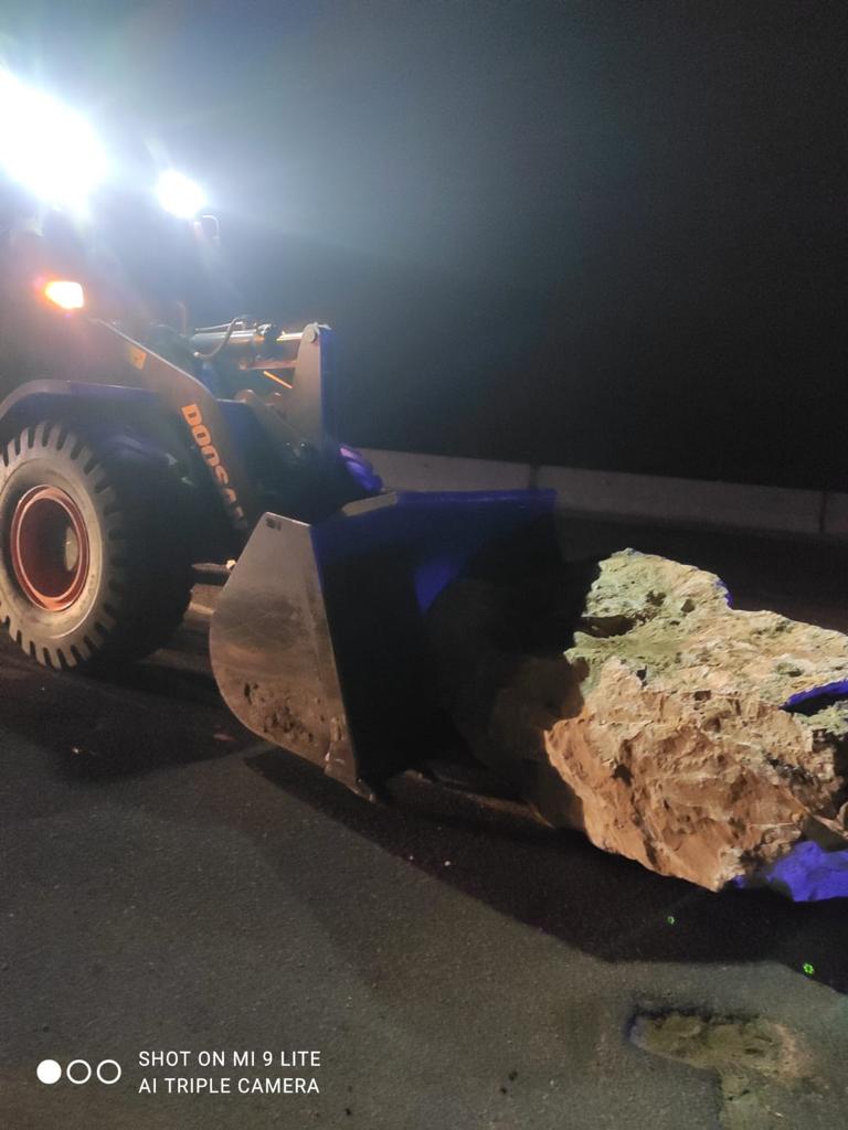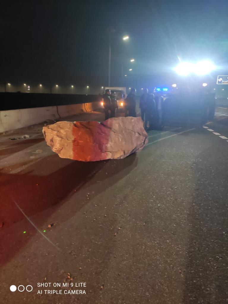 وعلى الفور تم اخطار عمليات مجلس ومدينة ابو صوير لدفع معدات الطوارئ لاخلاء الطريق من هذا الحجر الكبير، كما تم اخطار قسم شرطة ابو صوير لارسال دورية تابعة لتامين المكان.