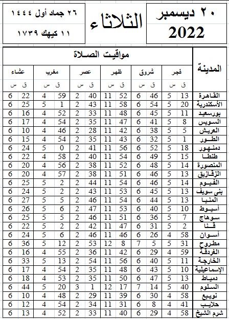 مواقيت الصلاة اليوم القاهرة والمحافظات