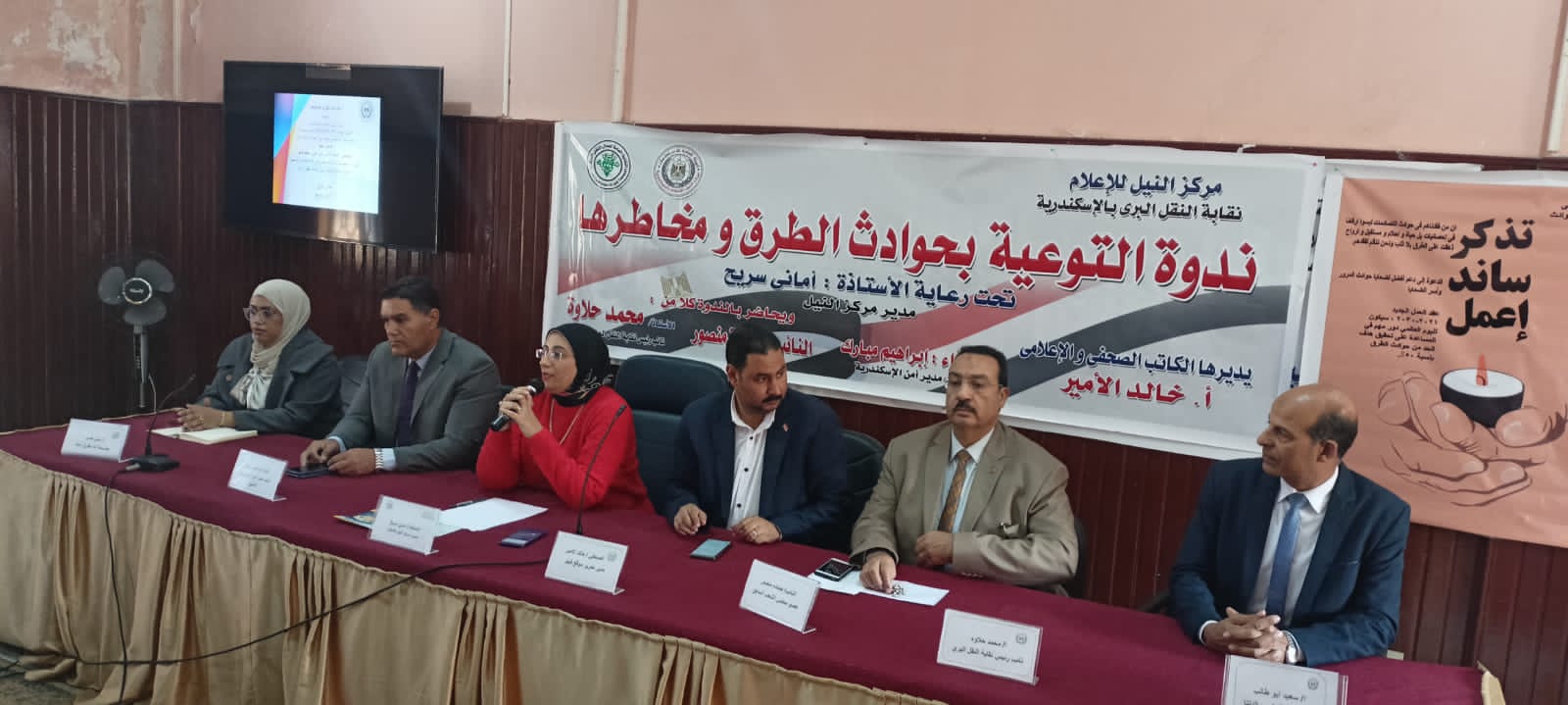 نظم مركز النيل للإعلام بالإسكندرية برئاسة اماني سريح ، ندوة بعنوان " حوادث الطرق ومخاطرها"، بمشاركة ممثلي المجتمع المدني والهيئات الحكومية ، والصحفيين والإعلاميين.