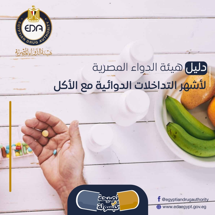 وضعت هيئة الدواء المصرية دليلا إرشاديا بشأن أشهر التدخلات الدوائية مع الطعام لمنع التعرض لأي آثار جانبية نظرا، لأنه يوجد عدد من الأغذية يمكن أن تتعارض مع تناول أنواع معينة من الدواء